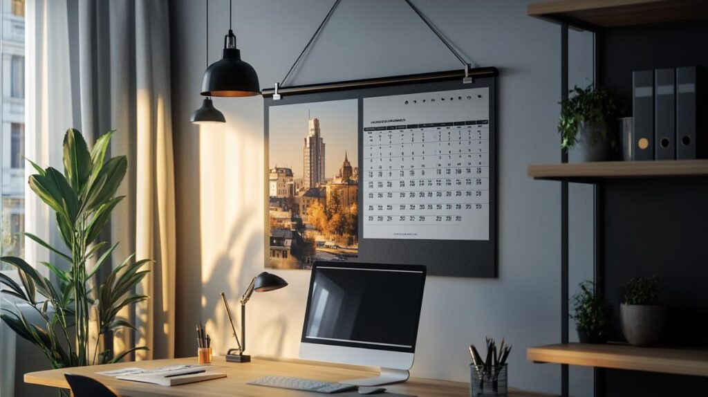 La dimension pratique du calendrier s’enrichit considérablement lorsque vous y intégrez des informations personnalisées. Les événements récurrents comme les anniversaires de famille, les dates anniversaires importantes ou les rendez-vous réguliers peuvent être préenregistrés sur les bonnes pages. Cette fonctionnalité transforme votre création en véritable assistant personnel qui vous rappelle les moments clés de l’année. Les jours fériés sont également paramétrables selon vos préférences, permettant d’adapter le calendrier à votre situation géographique ou vos traditions familiales. Cette approche sur mesure garantit que votre calendrier ne sera pas seulement décoratif mais véritablement utile au quotidien.